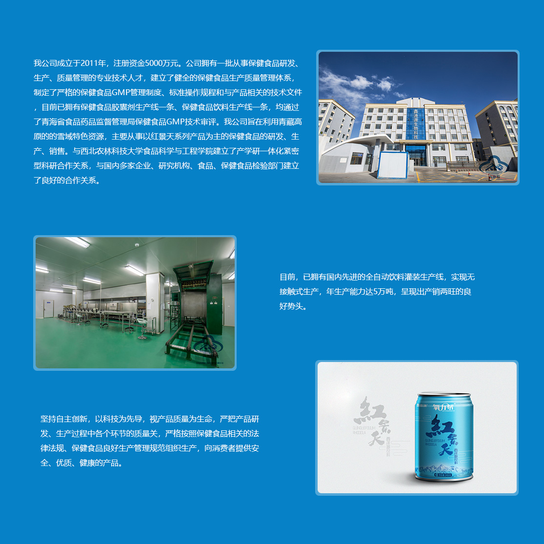鑫池源公司立足于青海省綠色環(huán)保無污染的高品質(zhì)紅景天資源,以西北農(nóng)林科技大學食品科學與工程學院和青海格拉丹東藥業(yè)有限公司為技術(shù)依托,主要從事紅景天、紅枸杞、黑枸杞等高原生態(tài)植物資源的研究開發(fā)和深加工,產(chǎn)品包括“景胨”牌紅景天西洋參保健飲品、紅景天口服液、紅景天膠囊等系列產(chǎn)品。